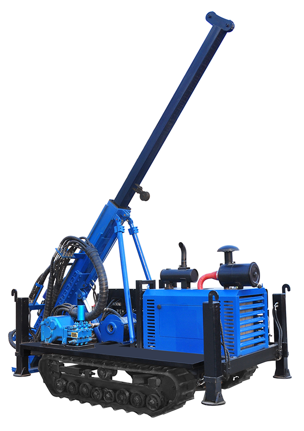 能全液壓鉆機,該鉆機由柴油發(fā)動機連接液壓油泵,為液壓沖擊動力頭和液壓回轉動力頭提供動力,利用該鉆機內的液壓沖擊式動力頭,高頻撞擊巖心管頂部,將巖心管沖擊鉆進,可實現鉆進速度快。液壓沖擊可保持原樣取芯,環(huán)保取芯作業(yè)需求。利用該鉆機內的液壓回轉式動力頭可實現勘探旋轉取芯和旋轉鉆井需求。從而實現了鉆機的取芯,鉆井,勘探一機三用,在滿足客戶的多種作業(yè)需求的基礎上大大降低了用戶購買成本。